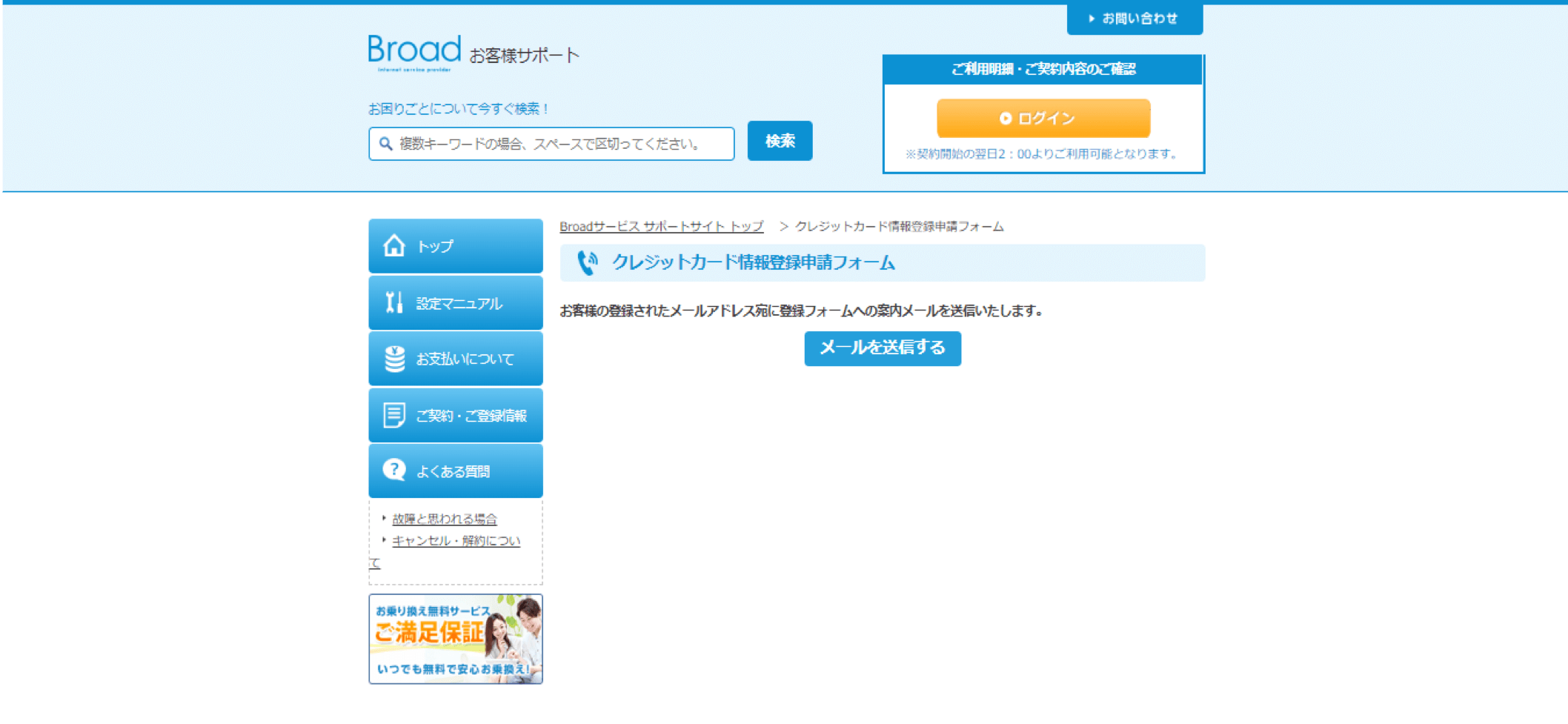 - ※クレジットカード払いのお客様の場合「お支払い方法の変更について」の「クレジットカード登録フォーム」ボタンをクリックしてください。