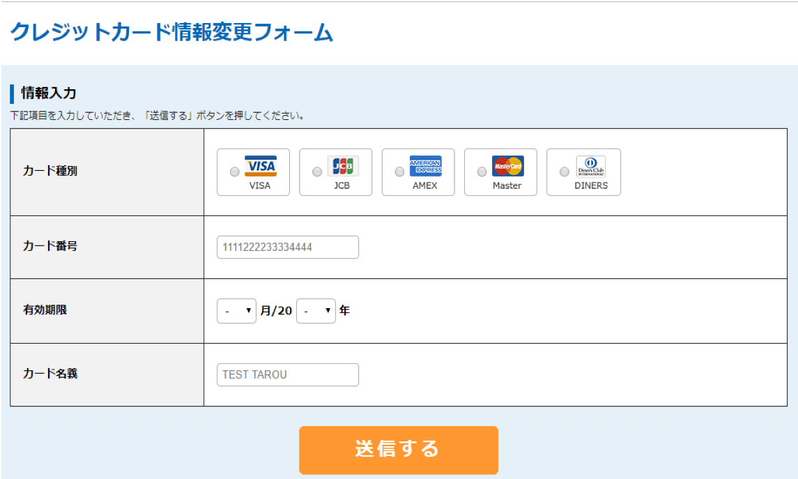 「クレジットカード情報登録申請フォーム」に必要事項を入力していただき、