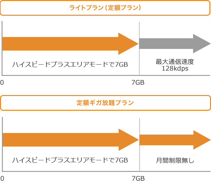 プランによって、通信制限がかかる場合がございます。下記のグラフをご参照ください。