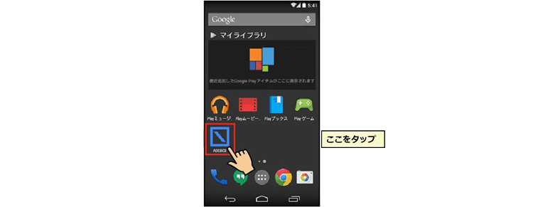上記インストール時に「完了」ボタンをタップした場合や、2回目以降にAOSBOX Android Proを起動する場合はホーム画面(またはアプリ一覧画面)のアプリアイコンをタップしてアプリを起動してください。