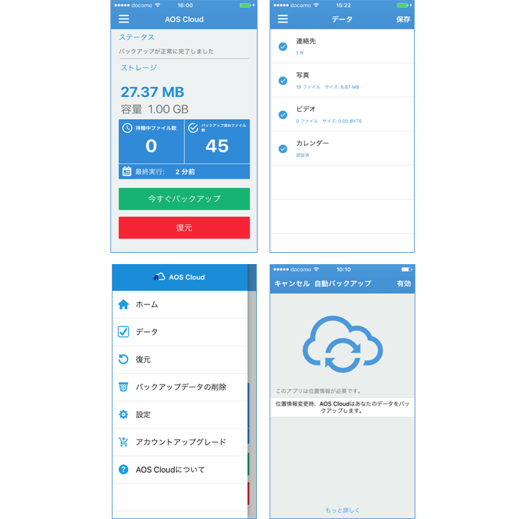 iOS(AOS Cloud)のバックアップ方法を掲載しています。詳細は下記マニュアルをダウンロードください。