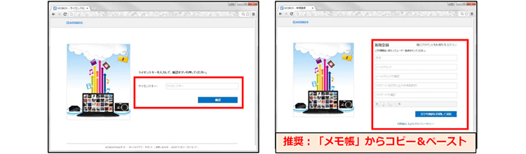 下記画面より、ライセンスキー(「ご契約内容確認書」に記載)を入力し、登録に必要な情報を入力してください。