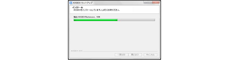 インストール後の初期設定がこれで完了となります。AOSBOXダイアログが表示され、自動でバックアップが開始されます。