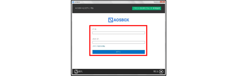 インストール完了後、メールアドレス、パスワードの入力画面が表示されます。入力完了後、「ログイン」をクリックしてください
