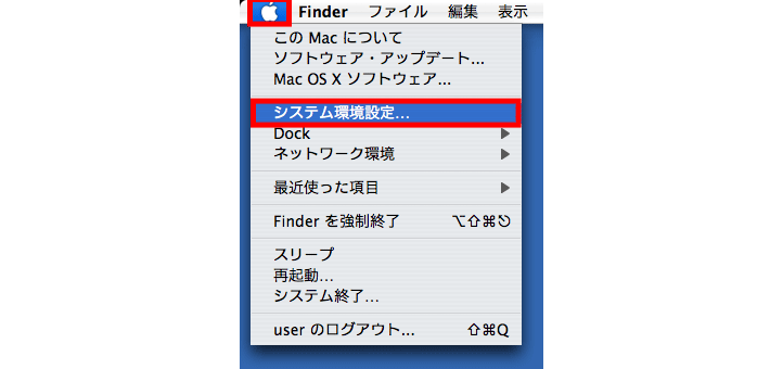 1アップルメニューから【システム環境設定】を選択してください。