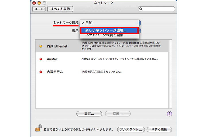 3「ネットワーク環境」のプルダウンメニューから【新しいネットワーク環境】を選択してください。