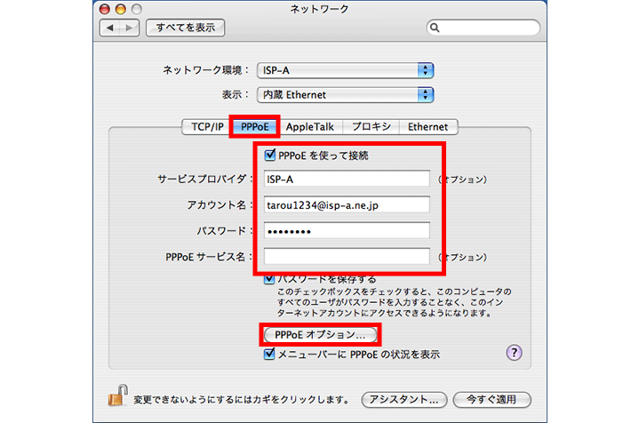 6【PPPoE】タブをクリックし、必要事項を入力してください。