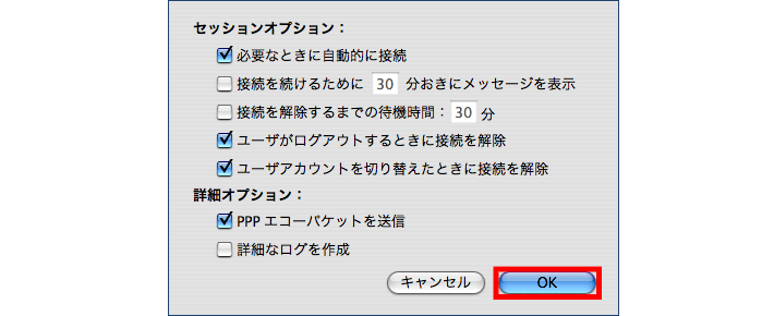 自動接続・自動切断などの詳細設定を行う場合は、