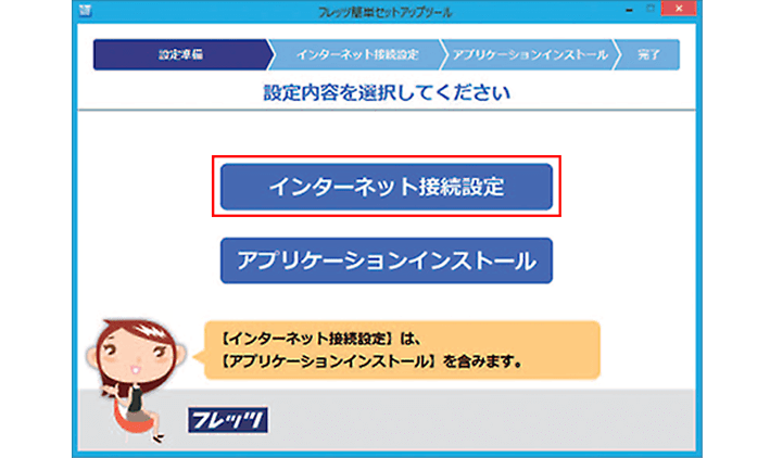 1.下記の画面が表示されましたら「インターネット接続設定」を選択します。