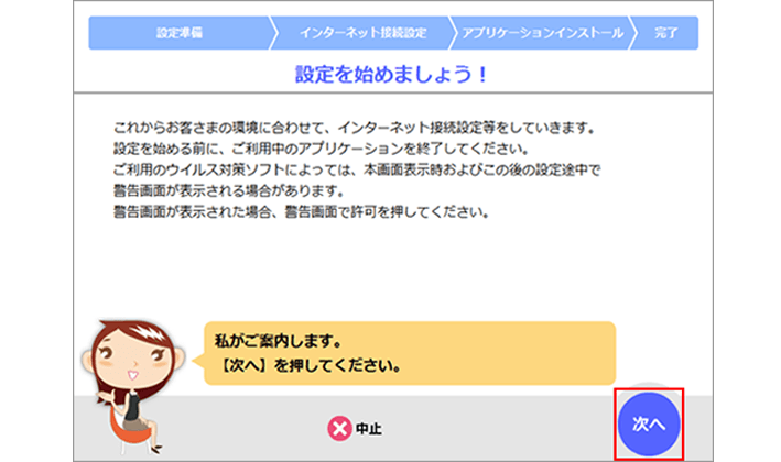 下記を確認し、「次へ」を選択します。