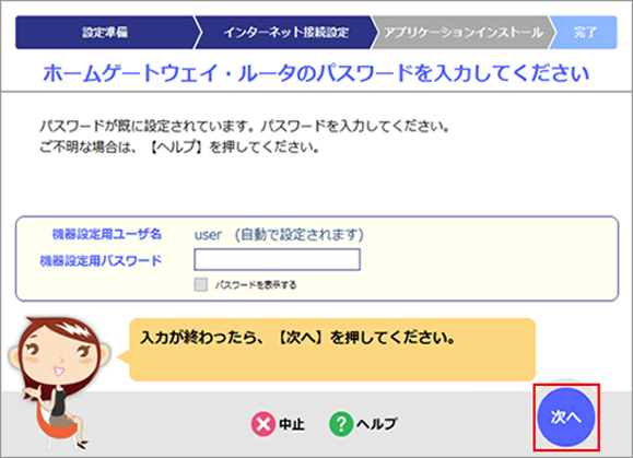 【参考】「ホームゲートウェイ・ルータのパスワードを入力してください」の画面が表示された場合