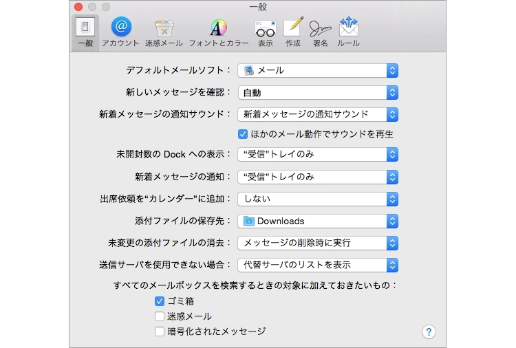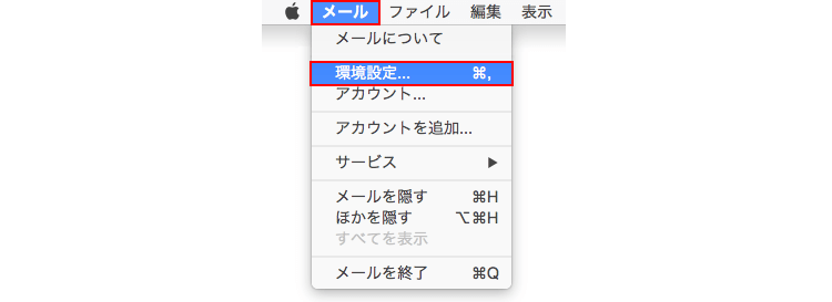 ※ Dock に「メール」がない場合は、メニューバーの「移動」から「アプリケーション」を選択して、「メール」を起動します。