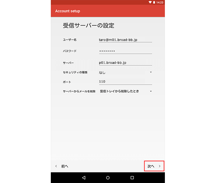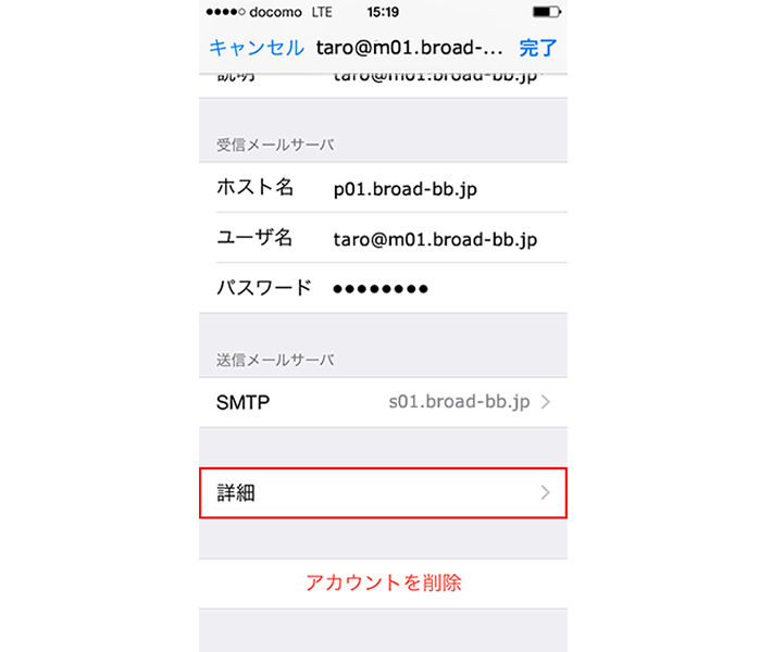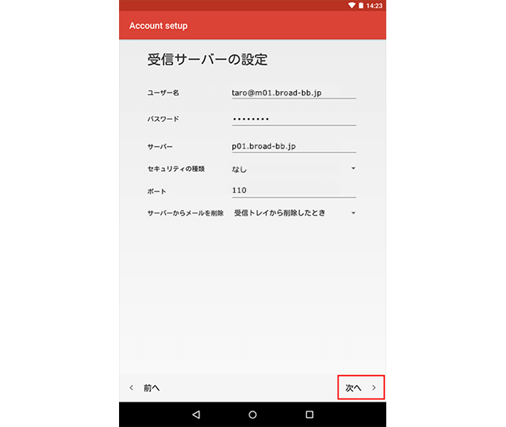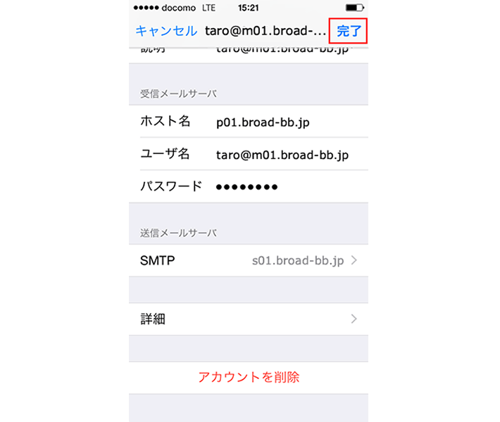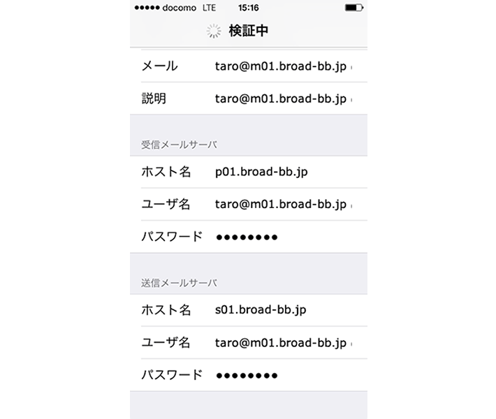 「taro@m01.broad-bb.jp」の画面で、以下のように設定します。