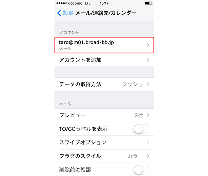 14[taro@m01.broad-bb.jp]を選択