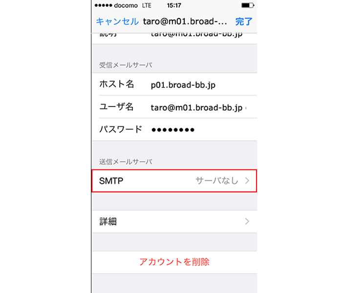 ・「SMTP サーバー」: s01.broad-bb.jp と入力します