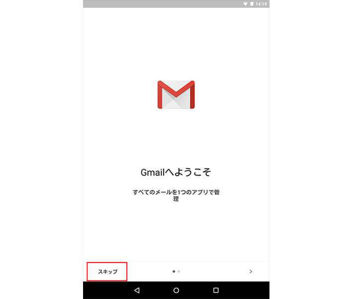 下記の画面が表示された場合は「スキップ」を選択してください。