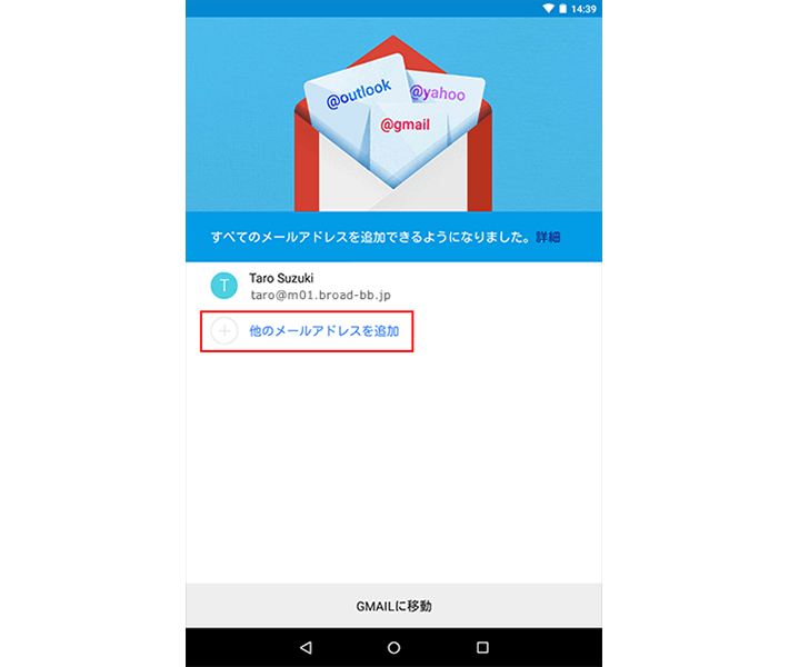 下記の画面が表示されますので、「他のメールアドレスを追加」を選択し、ステップ3へ進んでください。