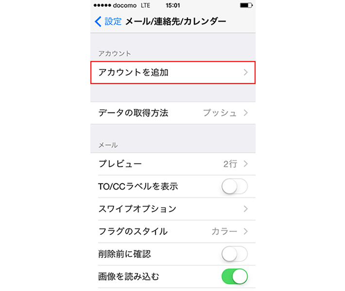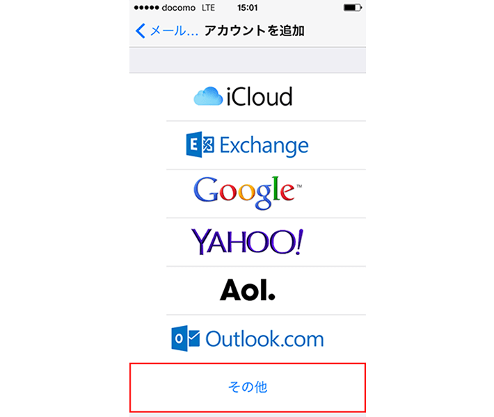 「その他」の画面で、「メールアカウントを追加」を選択します。