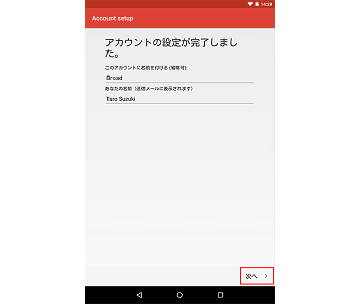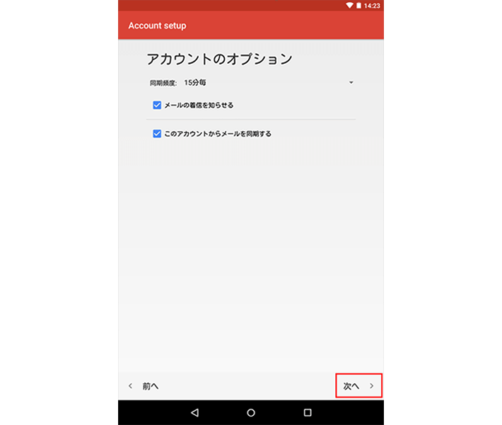 ・「このアカウントからメールを同期する」: 必要に応じて設定します