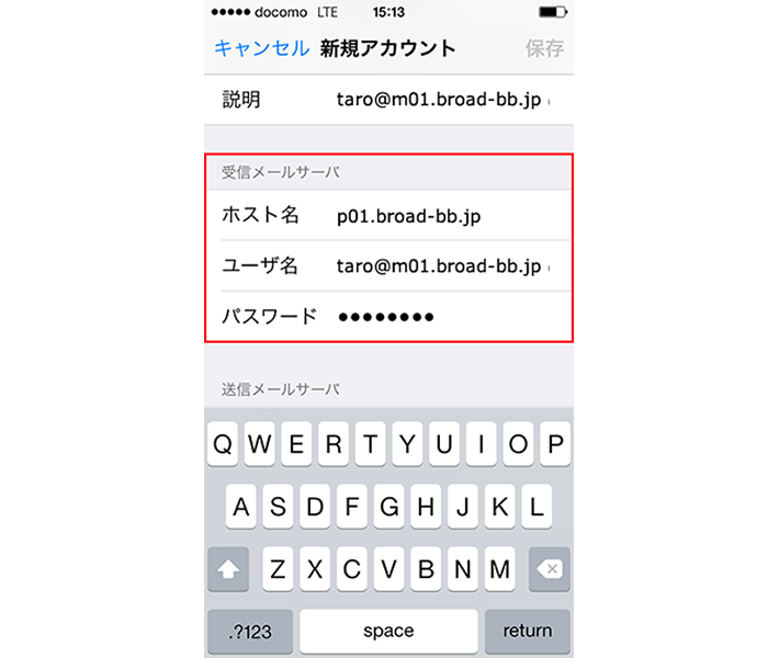 ・「サーバー」: p01.broad-bb.jp と入力します