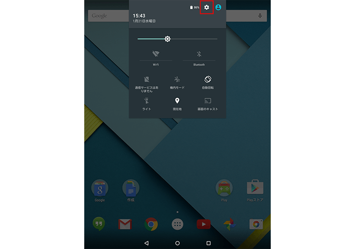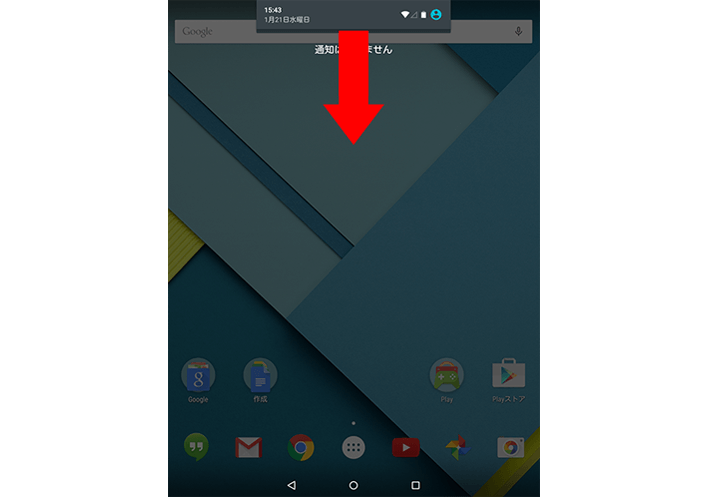 画面上端から下へスワイプし、表示された通知バーをさらに下へスワイプします。