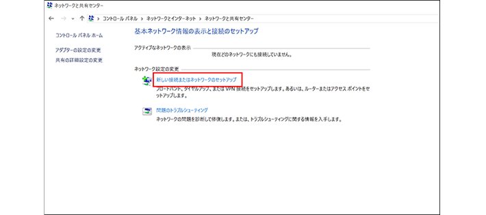 「新しい接続またはネットワークのセットアップ」を選択します。