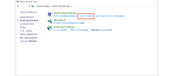 「ネットワークとインターネット」の画面で、「ネットワークに接続」を選択します。