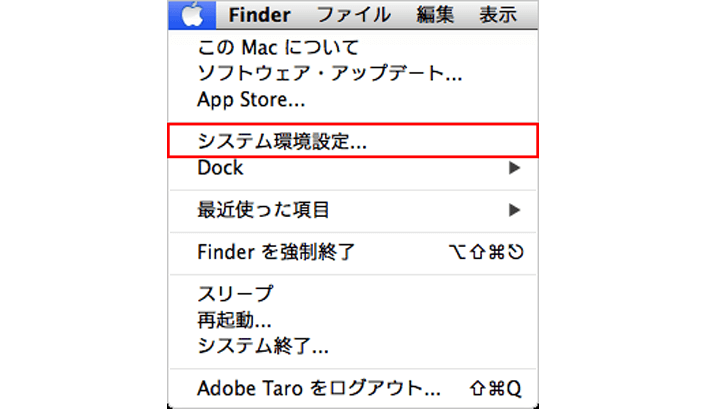 メニューバーのアップルメニュー ( Apple ) から「システム環境設定...」を選択します。
