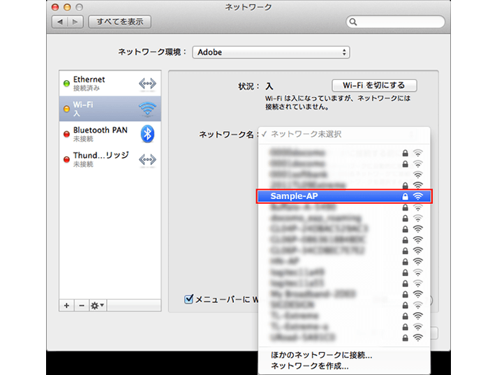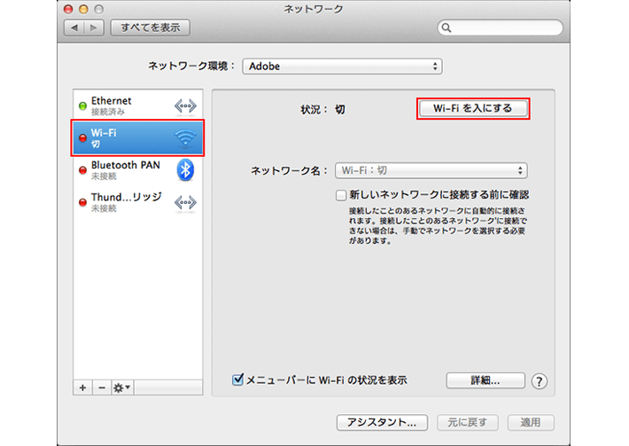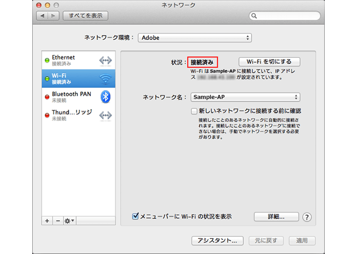 ※ Mac OS X 10.6 では「Wi-Fi」は「AirMac」という名称になっています。
