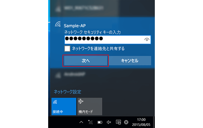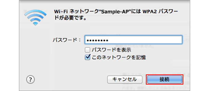 ※ チェックを入れますと、次回からこの [SSID] の電波を受信した際に自動的に接続がおこなわれます。