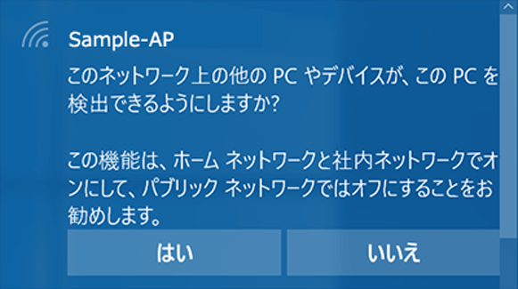 共有設定の画面が表示された場合は、ご利用の環境にあわせ「はい」または「いいえ」を選択します。