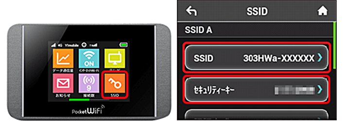 端末ホーム画面にある「SSID」よりSSIDを表示させます。