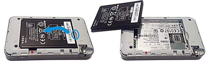 ○印の箇所に爪を引っ掛けて、電池カバーを取り外します。