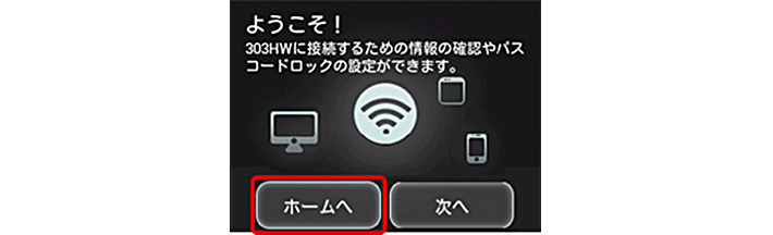 はじめて端末を起動される方は下記の画面が表示されますので、「ホームへ」をタップしてください。
