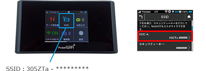 端末ホーム画面にある「SSID」よりSSIDを表示させます。