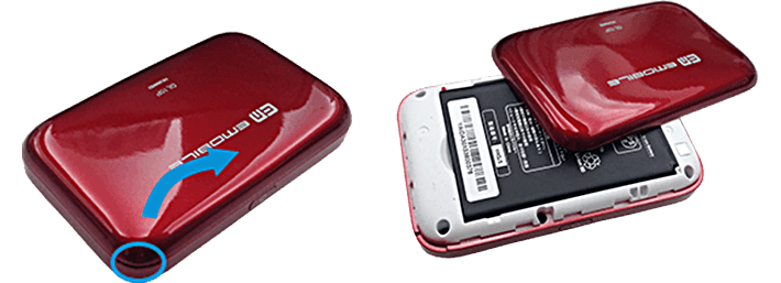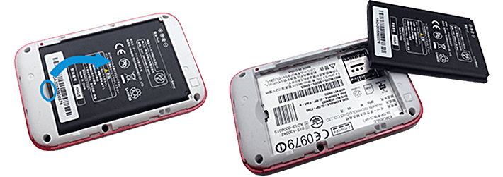○印の箇所に爪を引っ掛けて、電池カバーを取り外します。