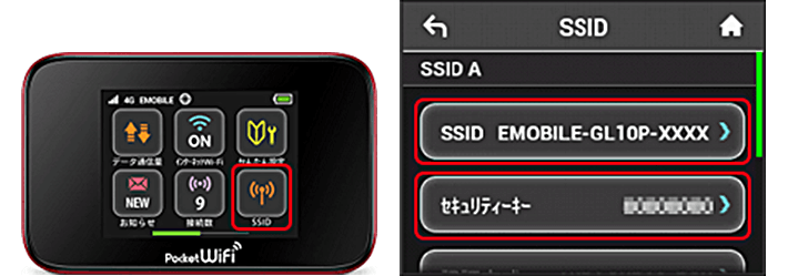 端末ホーム画面にある「SSID」よりSSIDを表示させます。