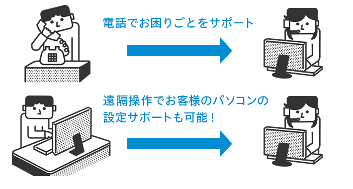 PCプレミアムサポートは、パソコン/プリンタ等の周辺機器でのお困りごとを電話、または遠隔操作でサポートしてくれるオプションサービスです。