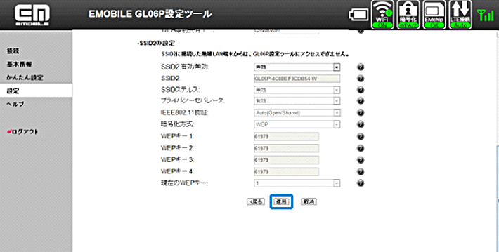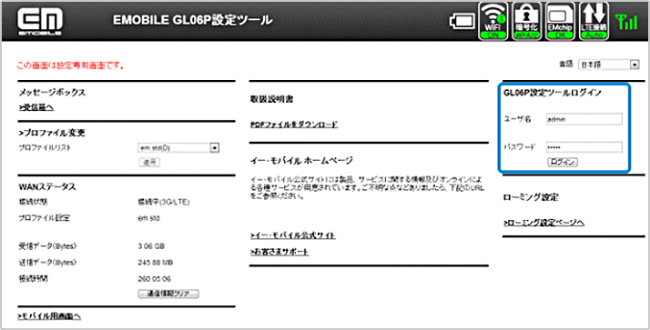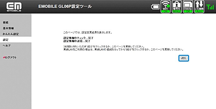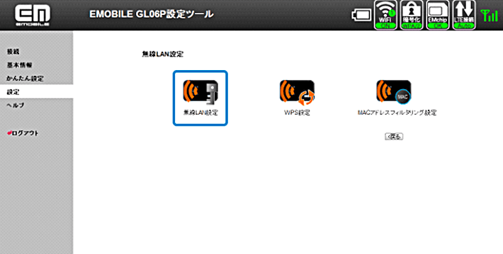※ このページでは、操作手順の例としてGL06Pの設定ツール画面を表示しています。